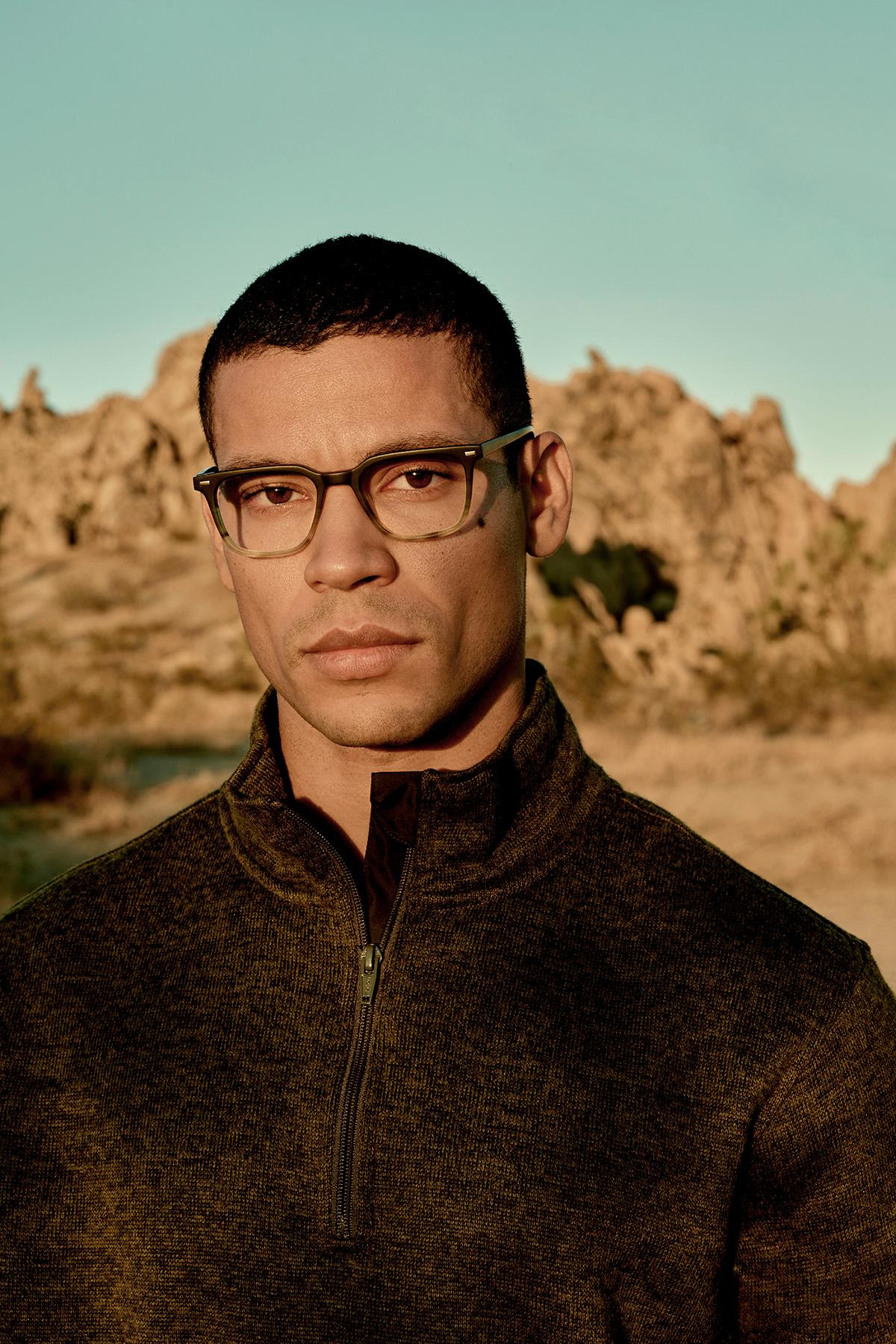 With its modified round shape and acetate rim, E-9232 has a retro appeal that is hard to resist. Featuring a monoblock stainless steel structure with a handmade Mazzuchelli acetate insert, E-9232 presents a custom temple design, which incorporates flexible movement to mimic the function of a spring hinge for added comfort and fit. The available colorways, all understated and easy to wear, include Grey Gunmetal, Steel Black, and Olive Gunmetal.