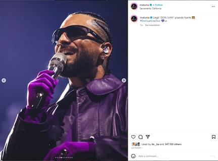 Colombian rapper/singer/actor MALUMA wearing BOSS 1607/S sunglasses in black during his Don Juan tour date at Golden 1 Center in Sacramento, CA on August 31st. Known worldwide he has over 64 million followers on Instagram.