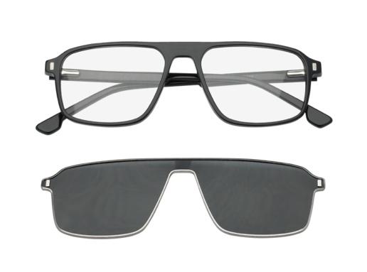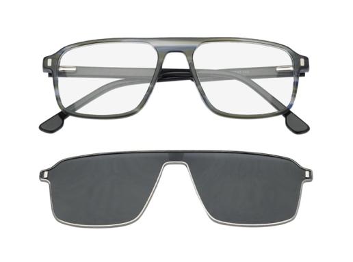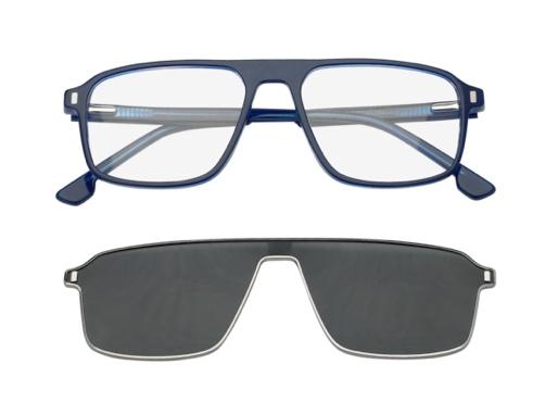 magnetic clip-on sun lenses. The metal clip-on for the all-acetate frames enhances stability