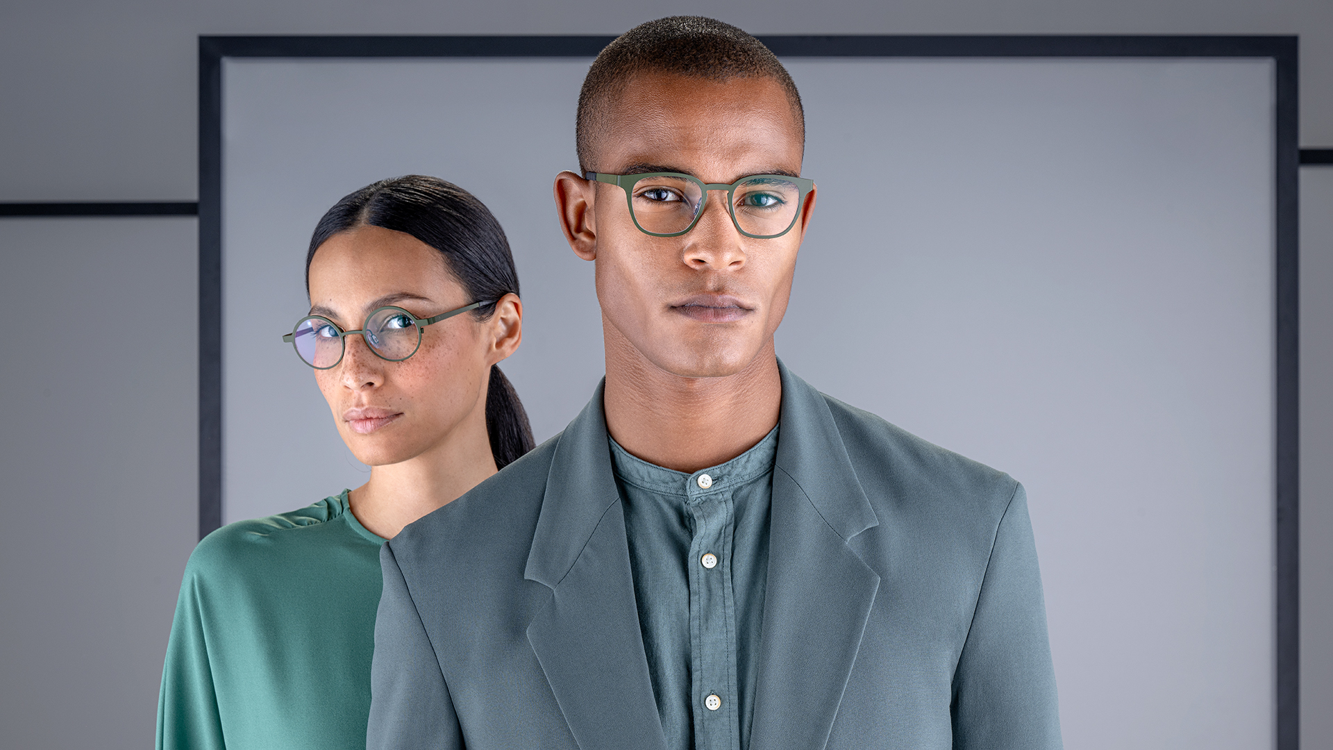 Deauville and Auberville express the same stylistic concept, but in two different shapes – the former a classic square, the latter panto-inspired. In both, the bridge and end pieces are in relief and contrast with the rest of the frame in which the new metallic mix-and-match colors appear – like yellow ocher paired with purple, purple with brown, vintage rose with blue, or green on green.