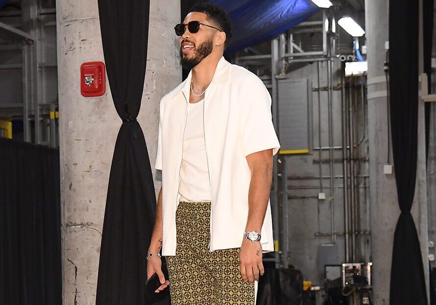MIAMI, FL – APRIL 29: Jayson Tatum #0 of the Boston Celtics arrives to the arena before the game during Round 1 Game 4 of the 2024 NBA Playoffs on April 29, 2024 at Kaseya Center in Miami, Florida. NOTE TO USER: User expressly acknowledges and agrees that, by downloading and or using this Photograph, user is consenting to the terms and conditions of the Getty Images License Agreement. Mandatory Copyright Notice: Copyright 2024 NBAE (Photo by Brian Babineau/NBAE via Getty Images)