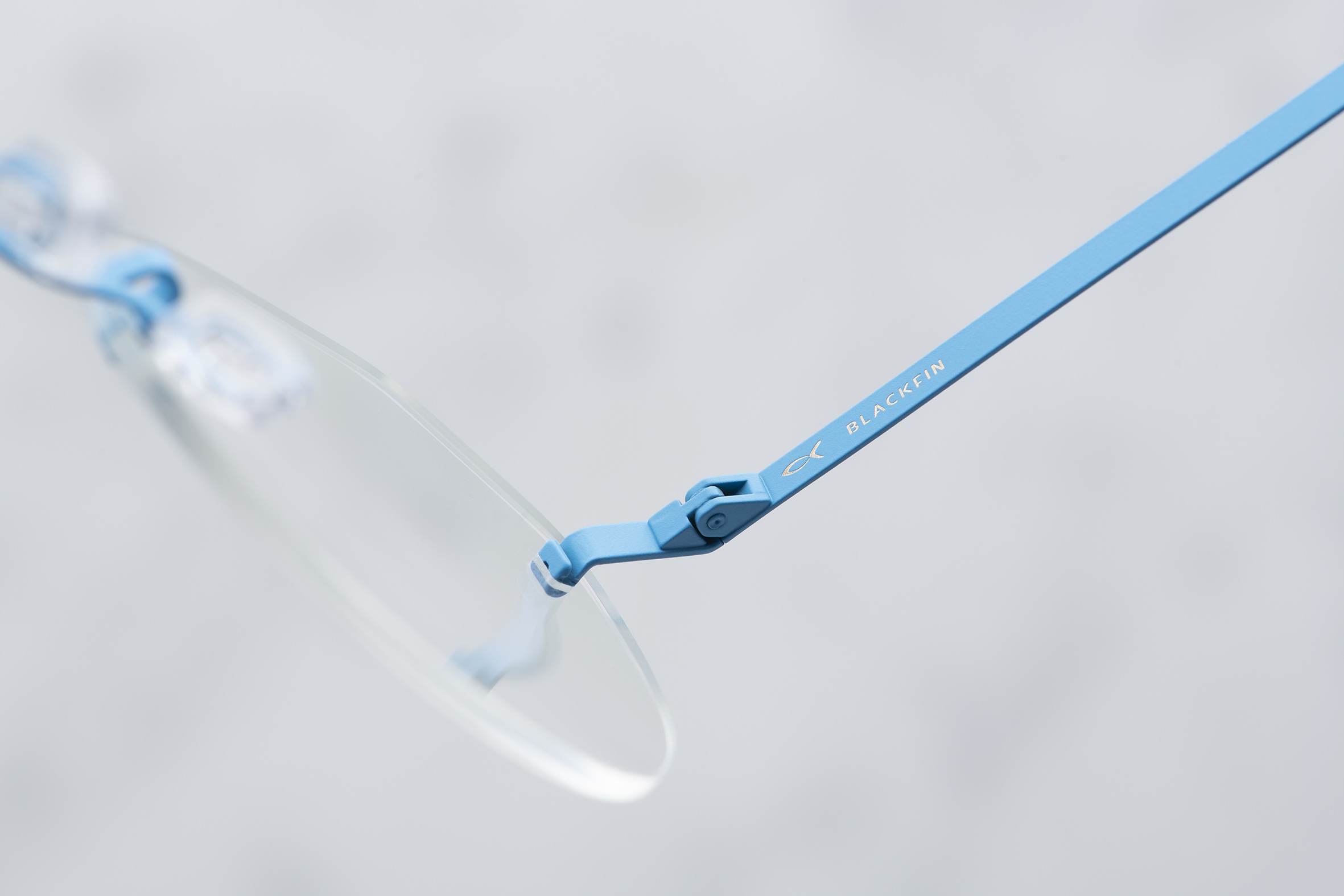 Each AERO style is made with a 0.7 mm thin sheet of beta titanium for the bridge ‒ to guarantee absolute frame stability ‒ and 0.5 mm for the temples, to ensure flexibility and comfortable fit. Unique in shape but traditional in its micro-mechanics, the hinge lends an air of solidity and can be easily adjusted, thus combining understated, minimalist design with the bold, recognizable features of the Blackfin brand.