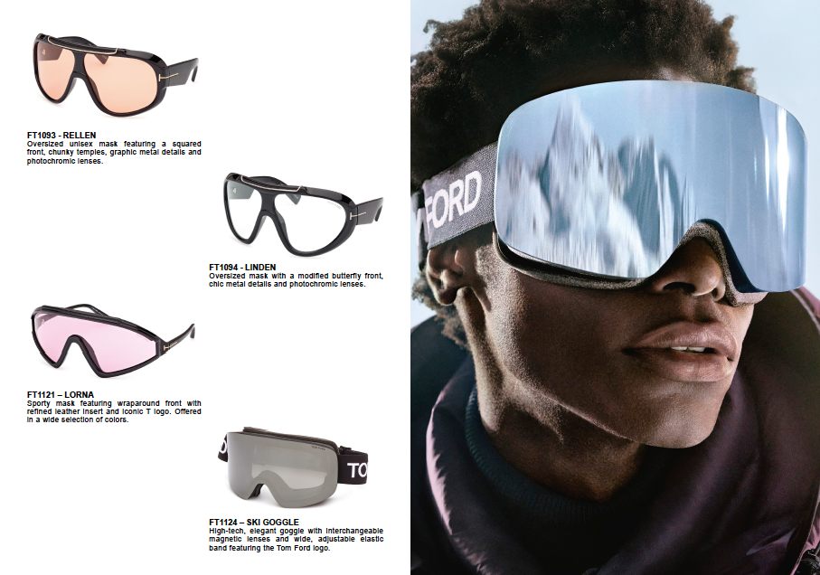 The TOM FORD Après-Ski Eyewear collection is designed, manufactured and distributed worldwide by Marcolin, and will be available at select opticians and TOM FORD boutiques starting in October.