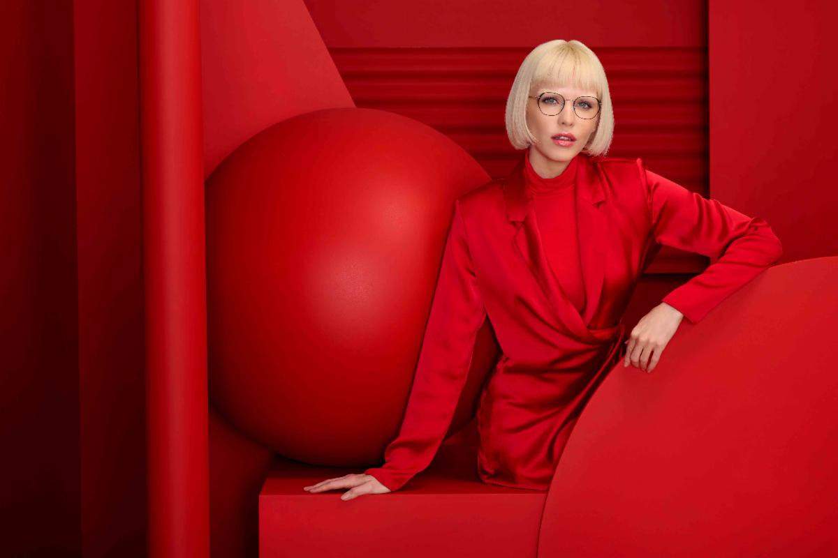 The new campaign is set in a red room filled with red geometric objects for a striking, monochromatic look. The red wardrobe with hints of black and white and mixed materials add texture to the polished looks. “The campaign focuses on the brand’s signature red color. Highly stylistic yet minimalistic in nature, this concept emphasizes the clean lines of the simple setting, accentuating the frames design”, says Alexis Nyiro, Director of Marketing and Product Development at WestGroupe. Images from the new campaign will be reflected in the 2023 KLiiK merchandising material and WestGroupe website and will also be available for COOP use by KLiiK retailers.